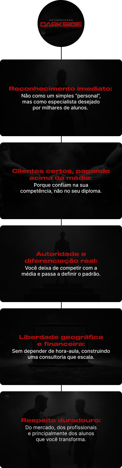 As aulas têm me dado segurança de caminhar nesse meio e sempre que tenho dúvidas, tenho você, o grupo dos alunos e os encontros semanais. Irmão só tenho a agradecer pela iniciativa e dizer que o sucesso que tenho hoje como Coach veio da DARKSIDE.